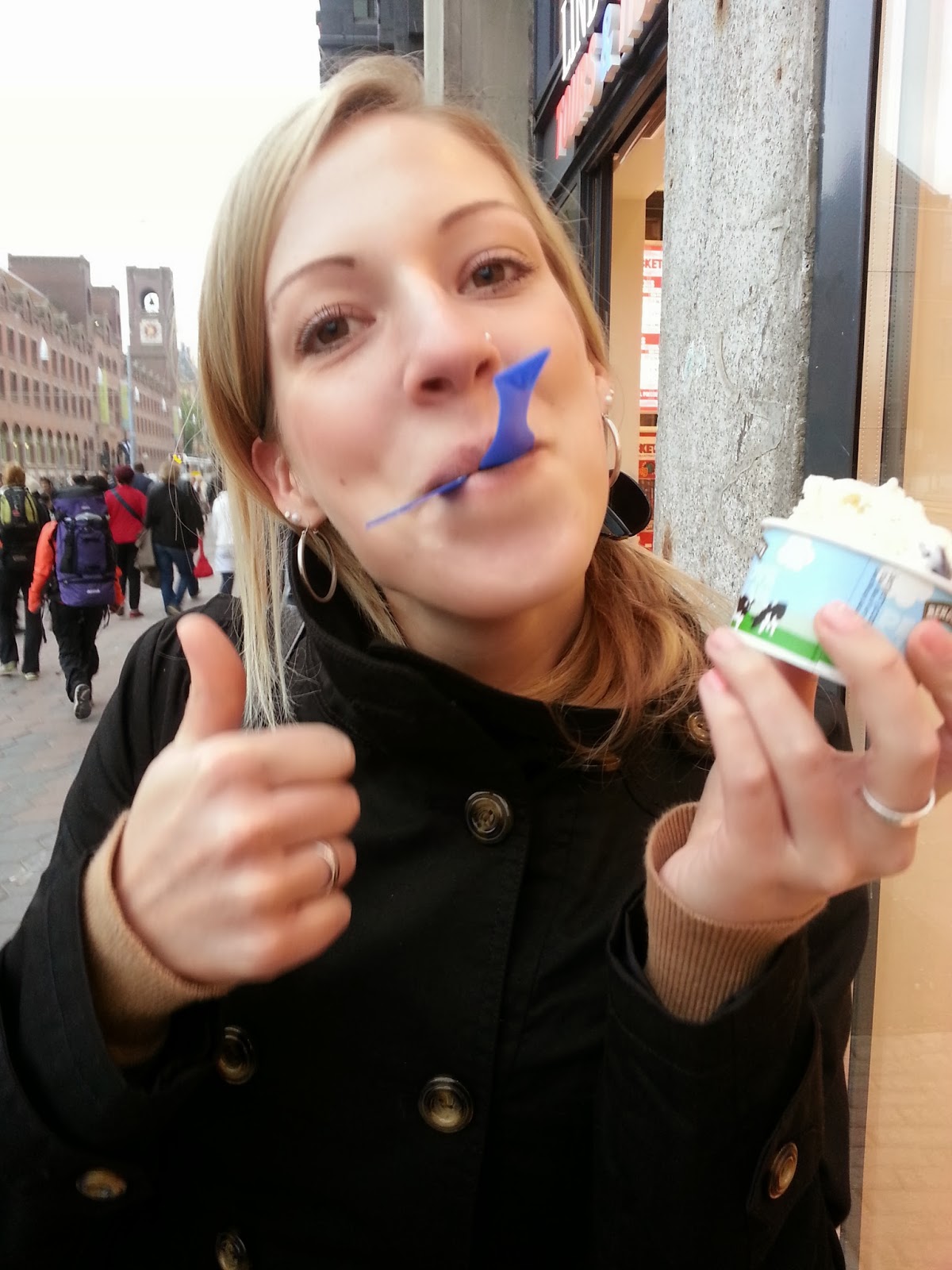 Exploring the city, I got my first impressions of this impulsive, lively atmosphere. The streets are full of people (including a higher amount of bicycle drivers ;) ) and there are restaurants, cafés and bars side by side. You can choose your food of the nationality you prefer most, italian, chinese, argentinian, brazilian, american, english... (or you go to a Coffeeshop, if you prefer this - but I didn't ;) ). BUT.... the first most exciting thing I found was - a BEN and JERRYS SCOOP BAR! Oh my gosh! I've never been to one before because there's none in Germany so I HAD TO STOP THERE!!!! I've chosen Chunky Monkey and it was like a orgasm of taste!!! Please Germany, please, please, please open a Ben and Jerry's scoop bar!!!